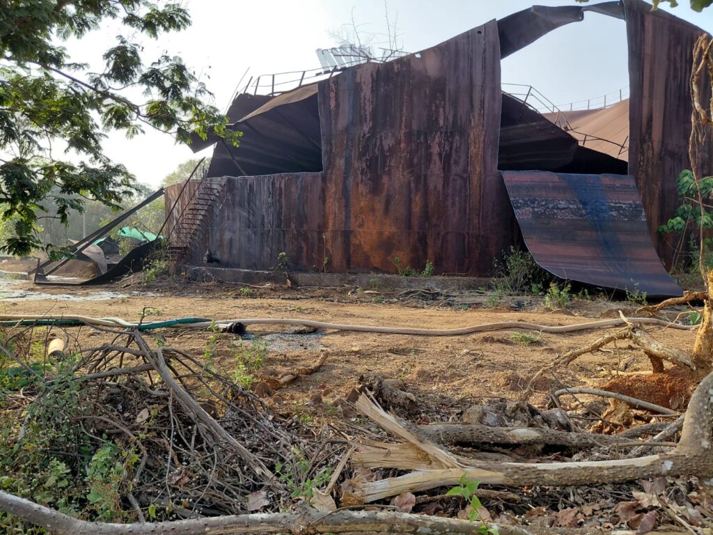 Canacona: Disaster struck at Shristhal in Canacona after a highly corroded molasses tank partially collapsed during dismantling, releasing a large quantity of toxic waste into the open and triggering panic among residents.