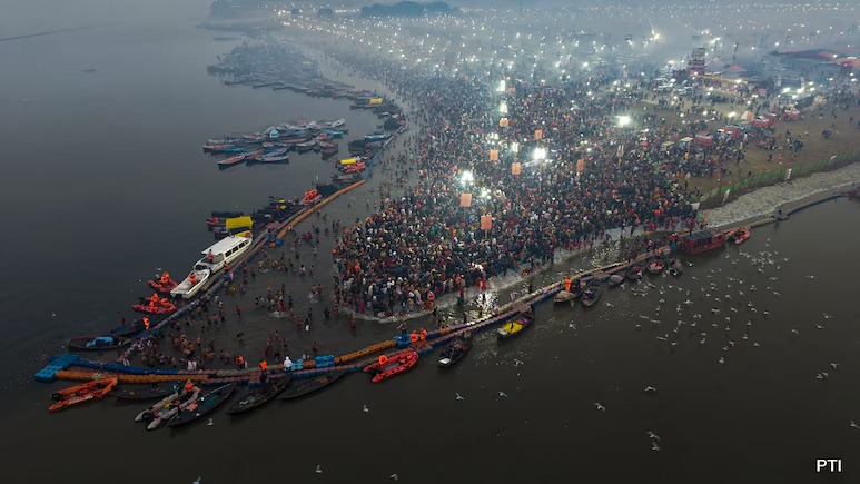 New Delhi: Prayagraj witnessed a massive surge of pilgrims on Thursday as more than 21 lakh devotees took a holy dip in the Ganga and at the Sangam on the occasion of Makar Sankranti during the ongoing Magh Mela. The ritual bathing began shortly after midnight, with large crowds gathering at the ghats in the early hours of the day.
