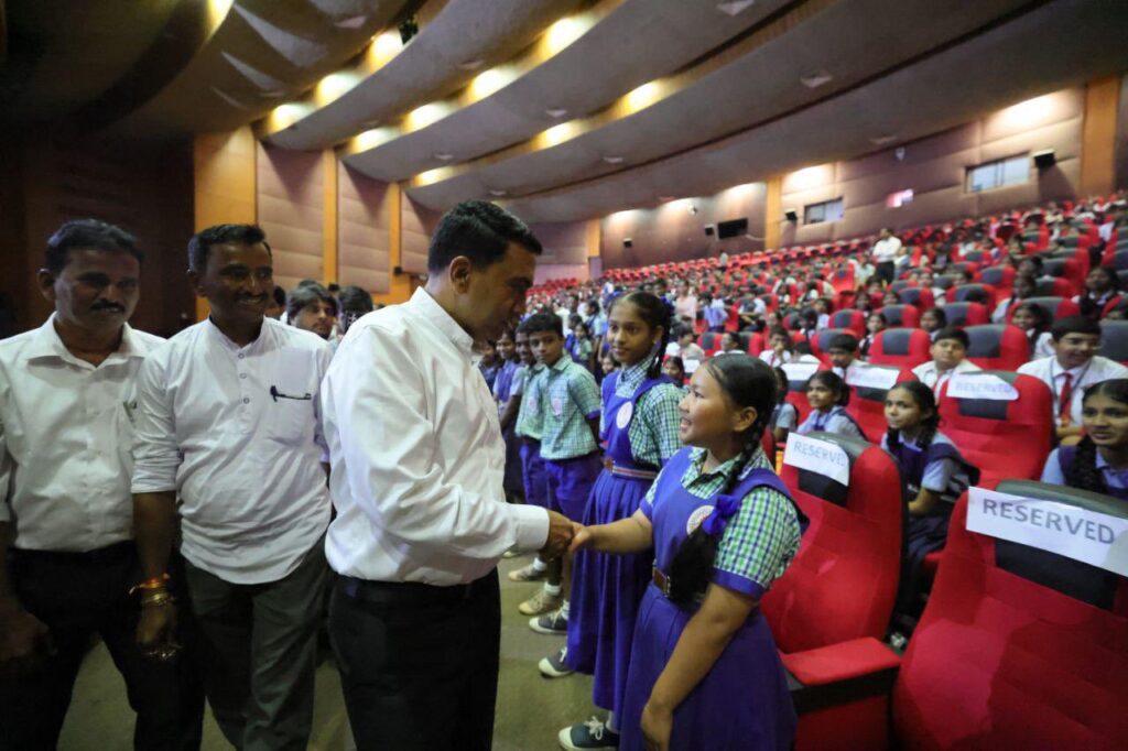 CM Sawant joined students from various schools to watch the 8th edition Pariksha Pe Charcha 2025 an interactive session by Prime Minister Narendra Modi at Ravindra Bhavan Sankhali.