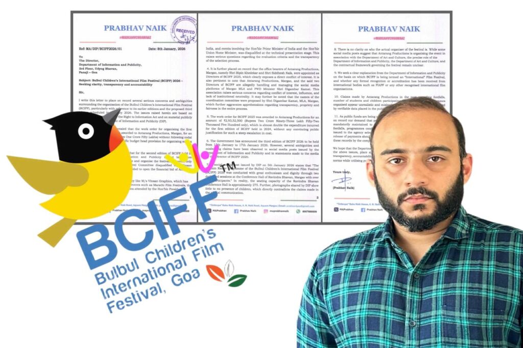 Margao: Madganvcho Awaaz and youth leader Prabhav Naik has raised serious questions over the organisation, credibility and utilisation of public funds for the Bulbul Children’s International Film Festival (BCIFF), including its earlier editions and the proposed BCIFF 2026 scheduled in January.