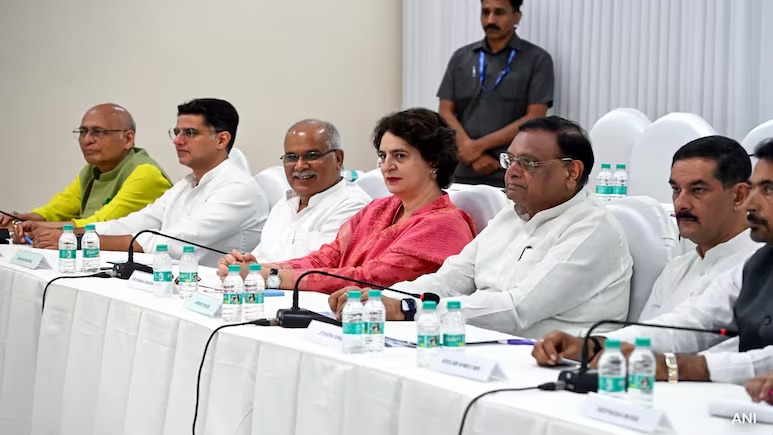 The meeting was attended by senior leaders, including Sonia Gandhi, Rahul Gandhi, Jairam Ramesh, K C Venugopal, and Priyanka herself.