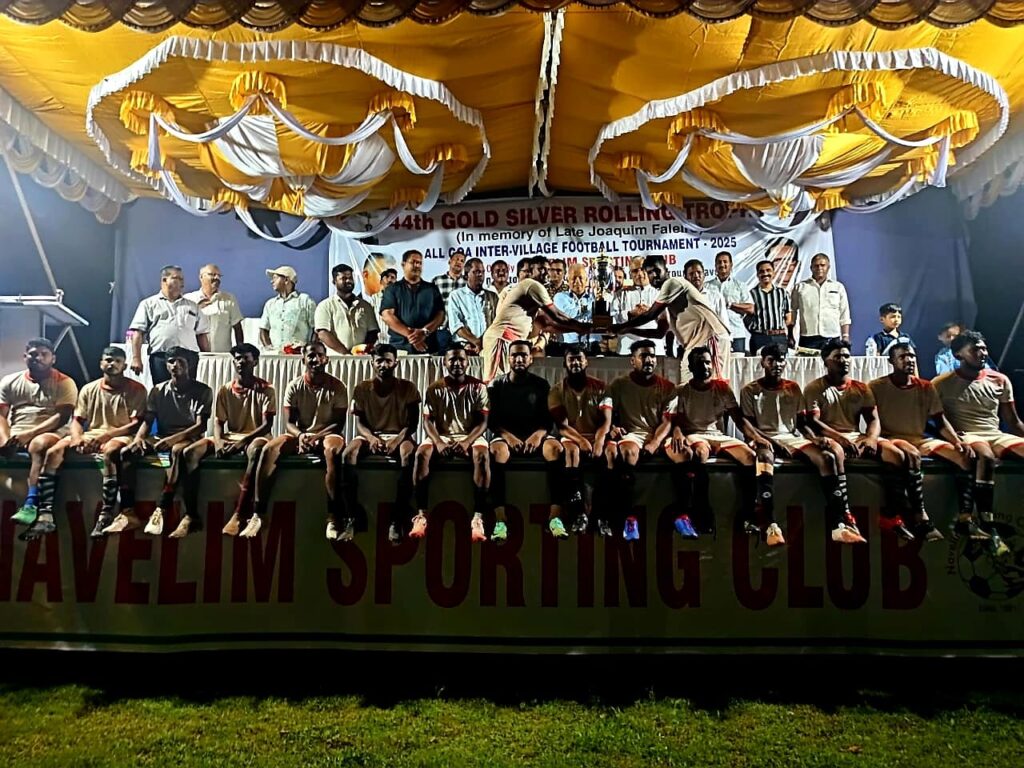 PANAJI: Sao Jose de Areal lifted the 44th Gold Silver Rolling Trophy after defeating host Navelim Sporting Club 8-6 in a tense tiebreaker at Rosary Church Ground, Navelim. The finals drew a crowd of over 4,000 spectators who witnessed an exciting contest between two determined sides that ended 3-3 at full time. For Navelim SC, Travis Souza scored a brace while Noah Luis added the third goal. Sao Jose de Areal responded with a brace from Dyral Costa and a goal from Joston Fernandes. In the ensuing tiebreaker, Sao Jose de Areal proved to be superior shooters, securing the trophy.