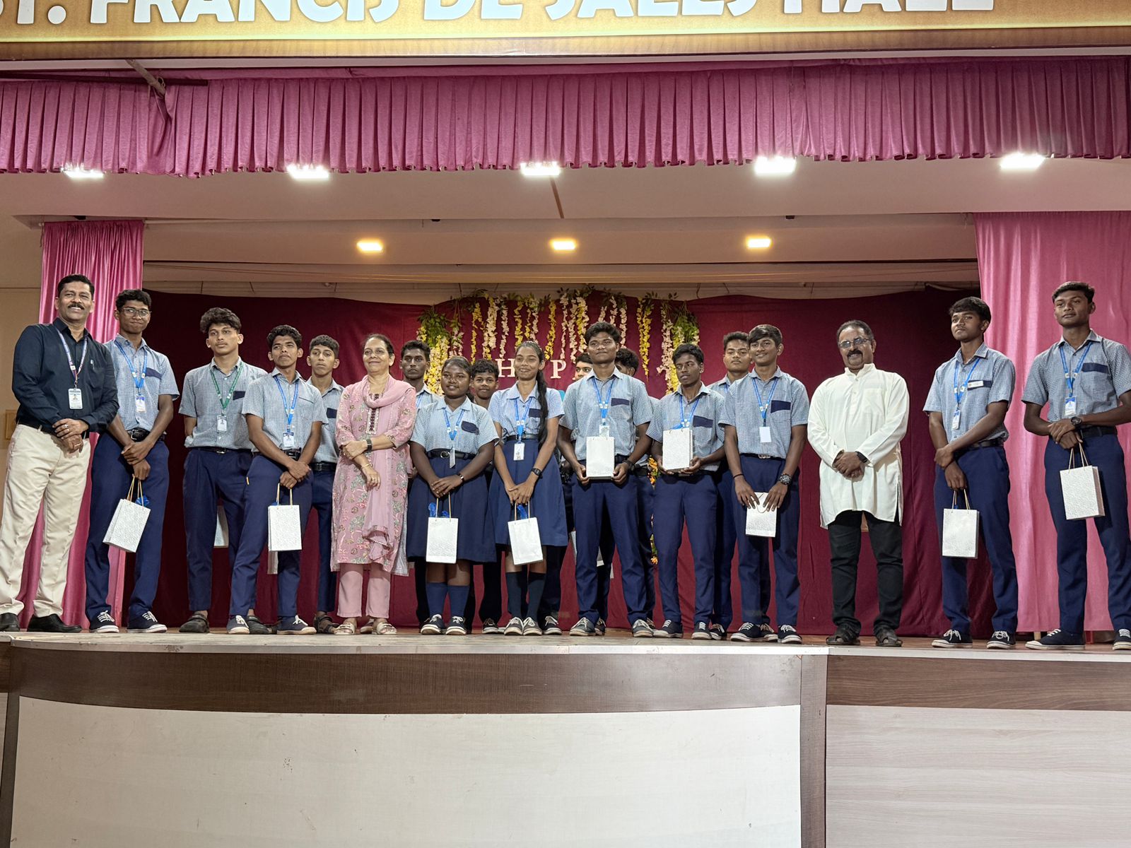 Manager Fr. Jerard Sahayaraj, Principal Angelica Fernandes, and Senior Teacher Amarnath Panjikar presented tokens of appreciation to the students in recognition of their discipline and consistent efforts.