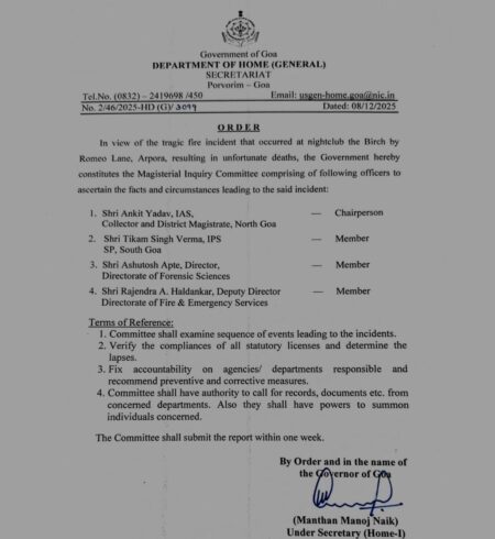 Team Goemkarponn PANAJI: The Goa government today issued an order constituting a four-member Magisterial Inquiry Committee to investigate the devastating…