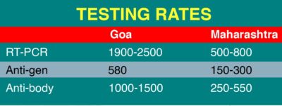 The rapid antigen tests in the private laboratories in Goa is Rs 580 while the Anti-body tests is Rs 1000-Rs1500.
