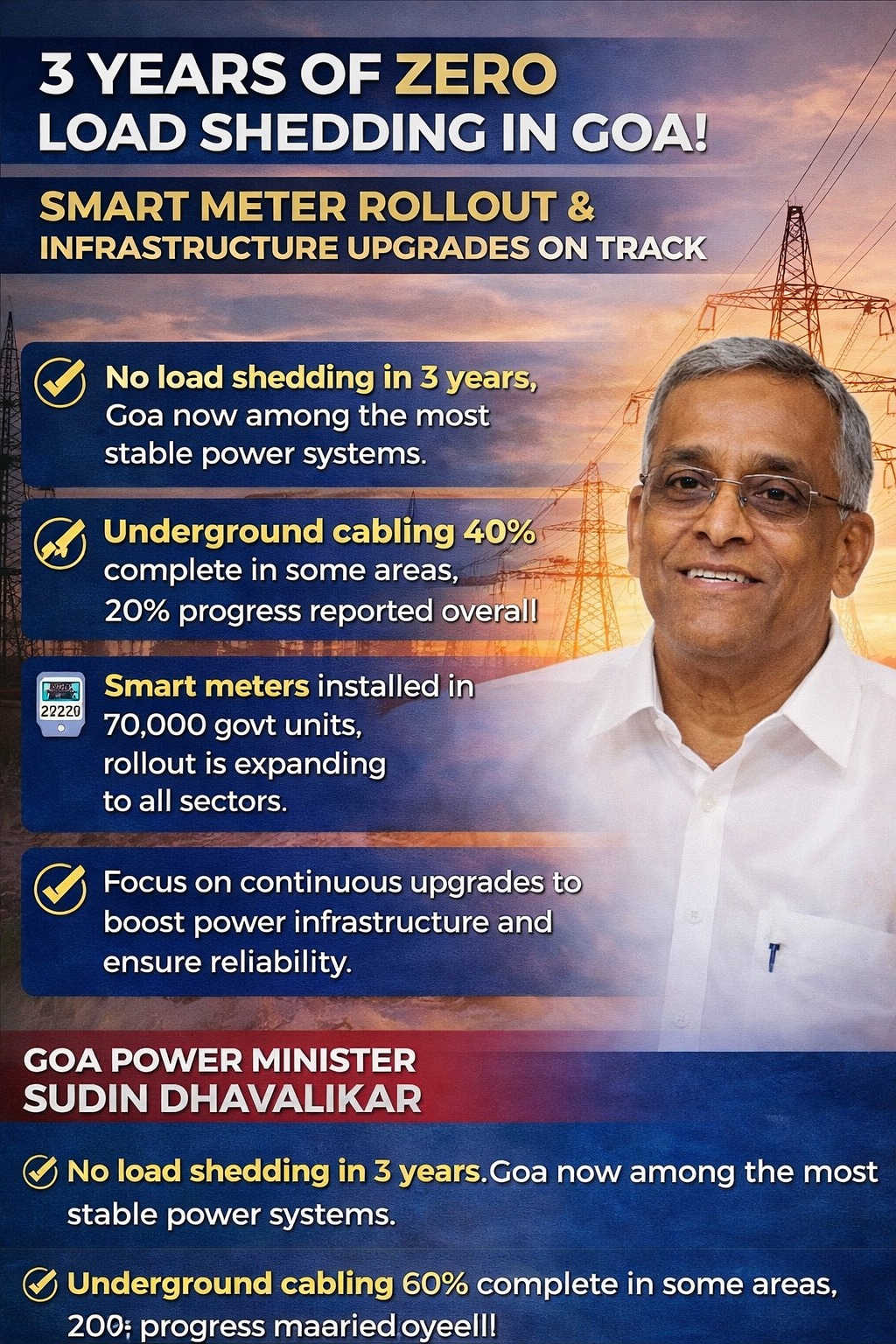 Responding to criticism, he maintained that the government’s focus remains on strengthening infrastructure and ensuring uninterrupted power supply, adding that Goa’s power system is now among the best-performing in the region.